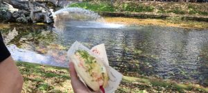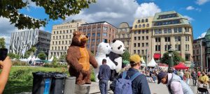 ein wenig Suchen auf der Karte fragte ich und bekam als Antwort, dass die mehrere Craftbiere hatten. Somit ging ich die Tani holen, da sich rausstellte, dass die sich auf Craftbier spezialisierten. Sie suchte sich eines aus und wir standen da noch ein wenig, wärend ich ein bisschen Hunde beobachtete, die vorbei kamen. Nach dem Bier gingen wir wieder in Richtung der Wiesenfläche mit den BBQ-Ständen. Dort holte ich mir an einem kleinen anderen Stand ein alkohol Slusheis Wassermelone. Der war für mich nicht so gut, aber Tani mochte den tatsächlich lieber als den Ersten. Sie holte sich ams elben Metrostand nochmals das Getränk mit Zitronenlikör. Wir setzten uns etwas abseits auf so Sitzflächen, wo kurze Zeit später die Security zu zweit zwei offensichtlich betrunkene Obdachlose vom Platz eskotierten,