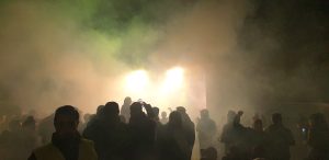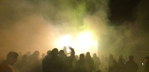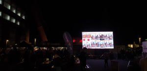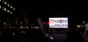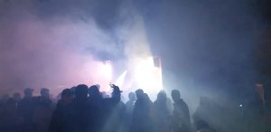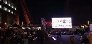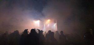 wem kurz ins Gespräch, der auch deutlich gegen E-Autos ist. Wir holten uns zu Essen beim Edekastand am Eingang des Zechen-Museums jeweile eine kleine Portion Fladenbrot mit 5 Cevapcicis. Dazu gab es ein kleines gefäß Soße. Ein Sitzplatz war zum Glück schnell gefunden, nicht so viel Glück: Beim Essen begann es zu regnen und natürlich waren wir nicht überdacht, nur der Schirm von Tani hat schlimmstes verhindert. Danach schauten wir uns das um 21 Uhr startende Feuerwerk an, was