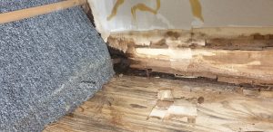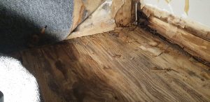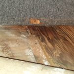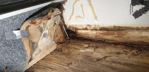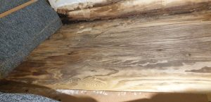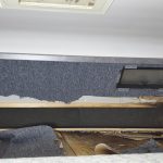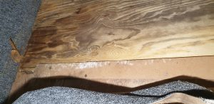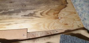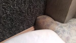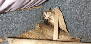 Am 16.08.2024 habe ich dann neben eines weiteren Mals Wasser vond er Plane ablassen auch die feuchte Stelle mit einem stück Holz der Kaputten Leiste selbst dort den Teppich angehoben, damit da besser Luft zum Trocknen ran kommt: