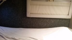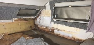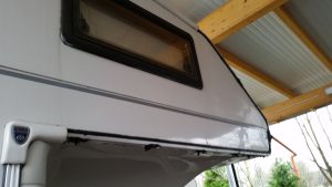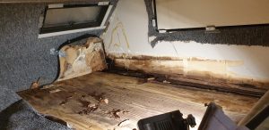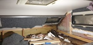 Märzcontest 2024: Direkt beim ersten Contest nach Corona und langer Auszeit stellten wir fest: Es ist Wasser durch Regen in den Alkoven eingedrungen. Die altbekannte Stelle war wieder undicht und nasser als je zuvor. Starkregen hat hier dazu beigetragen, dass die Feuchtigkeit soweit eindrang, dass die bettdecke und Madratze schimmelten. Anstatt also im Alkoven zu schlafen, schliefen wir auf der Sitzgruppe mit Tisch, die man zum Bett umbauen kann.