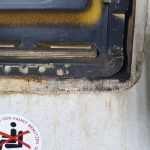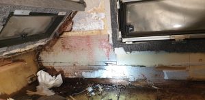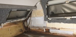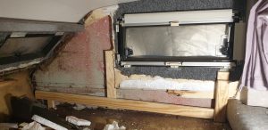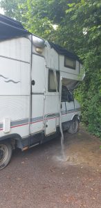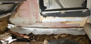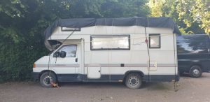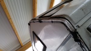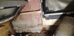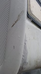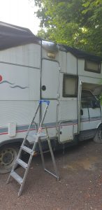 Der Vollständigkeitshalber erwähne ich auch hier die erste Reparatur am Buli anfang 2018. Diese geschah bei Otto, einem Vereinsmitglied des OVs, der eine Werkstatt für Wohnmobile und Wohnwagen hat. Die notbedürftige Reparatur geschah oberflächlich und nur von außen.