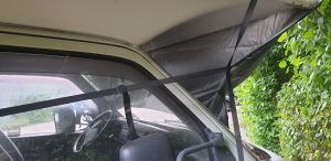 Nachdem durch starke Stürme die Plane vom Buli gerissen wurde, haben meine Mutter und ich diese am Abend des 26. Novembers 2024 notbedürftig im dunklem wieder drauf gesetzt und mir einem Seil mitten um den Buli rum fixiert, da einnige Haltegummis der Plane gerissen waren. Wasser ist aber nur bedingt rein gekommen, ehe Feuchtigkeit.