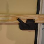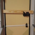Parallel habe ich die Sicherung für die Tür zum Einsatz gebracht. Diese besteht eigentlich nur aus einem passend geschnittenem Holzbrett mit einer Vertiefung für den Griff, die die Tür von Innen blockiert und einbruchssicher macht.