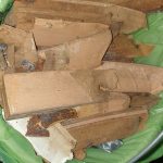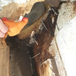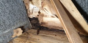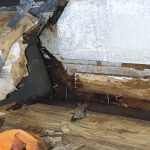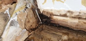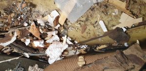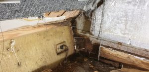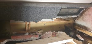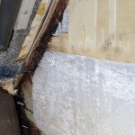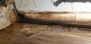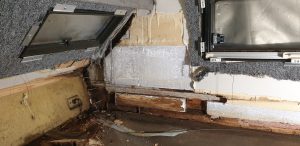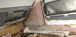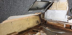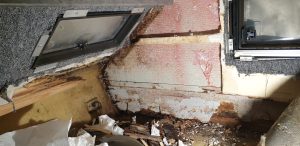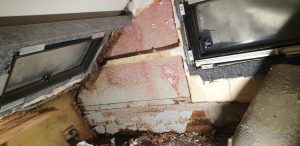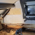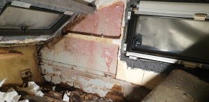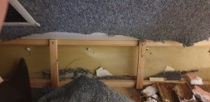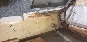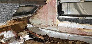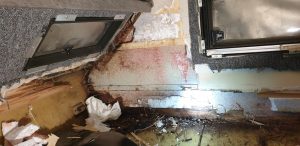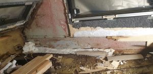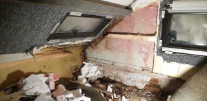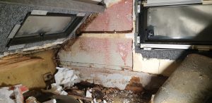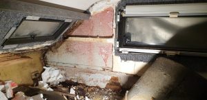Heute kurz weiter gemacht (mal wieder nach der Arbeit). Diesmal habe ich an der Seitenwand oben links das Styropor wegbekommen und bin bis hin zum Trageholz der Decke gekommen. Unten habe ich viel von den Kleberresten sowie eine komische dunelbraune klebende Schicht vom Alu entfernen können und komme so besser an die unterste und seitliche Kante. Ganz weg ist der Kram dennoch nicht. Aber auch einw enig allgemein Kleber an der Wand habe ich ab bekommen.Hier und da natürlich auch wieder ein wenig vermorschtes Holz weggemacht und mich weiterhin näher an das seitliche sowie vordere Fenster hingearbeitet. Auch diesmal hat mir meine Mutter ein wenig Gesellschaft bei der Arbeit geleistet.
