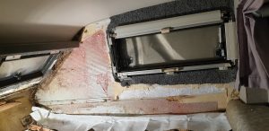 Heute nur kurz dran gewesen, aber mehr als gedacht geschafft: An der Seite einiges an Holz, Styropor usw. weg bekommen. Das Zewa, was ich am 23. Oktober 2024 in die undichte Ecke gelegt habe, war zimlich nass, hat aber gereicht um eine Pfützenbildung zu vermeiden. Allerdings hats seither nur heute fisselig geregnet. Ich habe wieder Zewa hingelegt, diesmal auch entlang der rechten unteren Kante um die Feuchtigkeit besser im Auge behalten zu können. Nebenher habe ich die Tage bei der Firma Karmann angefragt, ob die irgendwelche Informationen, am besten technische Pläne meines Fahrzeugs haben, leider sind die 2002 von Euramobile aufgekauft worden und haben nichts mit der Ursprungsfirma Karmann zu tun und auch keine Unterlagen. Aber Sie verwies mich auf eine Firma ehemaliger Karmannmitarbeiter hin, denen ich ebenfalls geschrieben habe. Als Antwort kam dort, dass keine Pläne existieren und die dass alles nur im opf haben, aber für Fragen darf ich mich gerne telefonisch bei denen melden. An sonsten habe ich in erster Linie das wagerechte Holz an der rechten Wand, was zwischen vorderseite und seitenfenster ist abbekommen sowie unter de Seitenfenster ein bisschen was. Meine Mutter war mal wieder mit dabei. Diesmal habe ich auch spasseshalber zwei 360 Grad-Fotos der Schadenstelle gemacht.