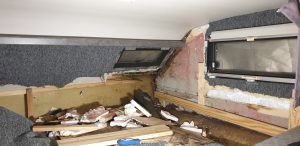 Am heutigem Samstag habe ich angefangen, die Baustelle Alkoven richtig in Angriff zu nehmen. Den Teppich der linken Wandseite habe ich im Bereich der Feuchte entfernt, sowie den Bodenteppich zur Seite getan und das Bodenbrett gelöst. Dann habe ich mit dem Kärcher Akkusauger eine menge holz aus der Wand gesaugt. Das Holz war feucht und die Holzbretter so vergammelt und morsch, dass man dies tatsächlich quasi komplett wegsaugen konnte. Es gibt noch sehr sehr viel zu tun, aber der Anfang ist schonmal gemacht. Mein Vater saß zur Gesellschaft die meiste zeit bei mir mit im Buli. Bilder zur Aktion: