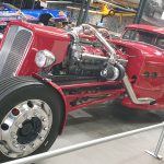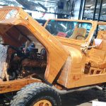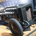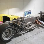 Darauf folgend kamen wir zu einer kleinen Halle, eig. ehe eine kleine Nische, in der nur ein Fahrzeug stand: Der „BRUTUS“ Dies war ein einzelstück, gebaut nach dem Vorbild einer Cohiba-Zigarre. Als Motor hatte dieser einen 550 PS (400KW) starken 47 Liter BMW VI Flugmotor (gebaut ab 1925 für Kampfflugzeuge und Flugboote, dieser stammt aus einem Flugzeug aus dem spanischem Bürgerkrieg und lag jahrelang auf dem Schrottplatz). Dieses Fahrzeug mit seinen 47 Litern Hubraum (ich muss dass nochmal betonen!) wog 2537 kg (Leergewicht) und brachte 2537 Umdrehungen die Minute. Das Fahrzeug war 5,5m lang, 1,8m breit und 1,6m hoch. Das Fahrzeug hat 34Zoll Holzräder mit Vollgummireifen und ist Flüssiggekühlt.Der Verbrauch beträgt 80 Liter auf 100 km. Das Fahrzeug ist übrigens kein reines Ausstellungsstück sondern soweit fahrtauglich und wird auch hin und wieder (leider nicht als wir da waren) vorgeführt.