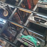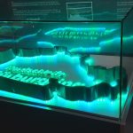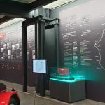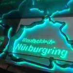 Dann kamen wir zur einem Raum mit einer Ausstellung zum Nürburgring. Hier gab es ein paar Farhzeuge sowie die Geschichte des Rings inklusiver eines 3D Modells des Nürburgrings (3D gedruckt, das gleiche Model, was ich schon mit dem 3D-Drucker gedruckt habe, nur viel größer skalliert), schön beleuchtet undmit der Möglichkeit, auf einem Touchscreen Streckenabschnitte zu wählen, die im Modell dann aufleuchteten. Traurigerweise leuchteten immer die falschen Stellen auf und nicht die, die man angeklickt hatte. Da gab es leider einen Fehler drinnen. Zwischendurch haben wir uns übrigens an einem Roboterarm als Souviner eine Münze von Speyer gekauft, der Roboterarm hat uns diese dort gegeben. Einen 0€ Schein von Sinsheim haben wir ebenfalls noch an einem Automaten gekauft.