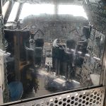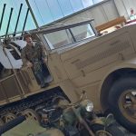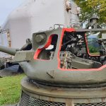 Weiter ging es in einer vom Außenbereich angeschlossene Halle, in der es um den zweiten Weltkrieg ging. Hier standen Fahrzeuge und Flugzeuge aus dem Krieg. Ebenfalls hing eine Junkers „Tante Ju“ an der Decke, die noch original mit den zeitgemäßen Symboliken versehen war. Neben dieser gab es noch diverse weitere Flugzeuge und Helikopter, die an der Decke gehangen wurden. Ebenfalls zu sehen war ein im Krieg zerstörter Panzer, von dem man die Teile so hingelegt bzw. gehangen hat, wie die im original unbeschädigtem Panzer waren. Dieser war rot beleuchtet und durch Knöpfe ein wenig interaggierbar. Ebenfalls war auf der zweiten Ebene, auf der man um die Halle im zweitem Stock rum gehen kann eine in Glaskästen gestellte Ausstellung von Modellen zu Kriegsfahrzeugen, vor allem Panzer oder mobile Kanonen. Eine weitere Runde durch den Außenbereich, in dem wir noch eine große Antenne in Form eines Parabolspiegels sahen, sowie einen Panzerturm, der seitlich zum hineinschauen aufgeschnitten war. Ebenfalls in dieser Halle ausgestellt waren Uniformen verschiedenster Epochen unterschiedlicher Dienststellen und Ränge. Diese waren in Glaskästen an Plastikfiguren. Zu diesen natürlich eine riesige Menge Zubehör sowie Abzechen und Co. Auch Diesel Stromaggregatoren aus dem Krieg waren in dieser Halle zu finden.