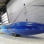 Weiter ging es in einer Halle, in der „The Blue Flame“ stand. Dies war ein Hochgeschwindigkeitsfahrzeug, was einen Weltrekord erzielte und durch einen Bremsschirm gebremst wurde. Das Fahrzeug stand direkt am Zugang zu einem Restaurant, in dem wir uns rein saßen und gegessen hatten. Ich habe dort Schnitzel mit Pommes gegessen, Tani ein Hauseigenes Museumsbier von der wir die Flasche immer noch haben. Wärend des Restaurantbesuches entschieden wir uns, auch in Speyer am nächstem Tag nach dem Museumsbesuch noch eine Nacht verbringen zu wollen. Ich rief in Speyer im Museumshotel an und nach einigen Versuchen buchte ich uns dort ein Zimmer (dies geschah doch erst in Speyer selbst). Nach dem Essen ging es natürlich weiter durchs Museum. In der Halle, in der auch die Blue Flame stand, gab es auch eine Ausstellung von Sportwagen (meines wissens nach eines der größten Ferrari-Sammlungen) und Oldtimer. Ebenfalls ausgestellt war hier ein DMC DeLorean.