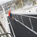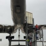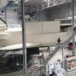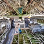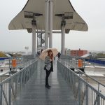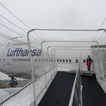 Weiter gings draußen zu einer Antonow Frachtmaschiene, in der man ebenfalls rein konnte, auch in den Laderaum. Dann gings zu einem weiterem Highlight in Speyer: Die Boing 747. Diese war sehr weit oben auf Pfälen montiert und stand in einer leichten Schräge. Über Treppen gelangte man zu der Boing zum Eingang und konnte rein. Dies war definitiv das mit Abstand größte Flugzeug, das wir besichtigt hatten. Teile des Bodens und der Wände wurden entfernt, sodass man den Innenraum und die Technik sehen konnte. Ebenfalls gelangte man nach unten in die Frachtkammer sowie zum Cockpit und die davorstehenden SItze der ersten Klasse. Der Weg zum Cockpit hoch über eine schmale Wendeltreppe war ein wenig erschwerend, da das Flugzeug nicht gerade stand. Über einen weiteren Ausgang gelang man auf eines der Flügel der Maschiene, über den man auch laufen konnte. Von hier hatte man eien gute Sicht auf die weite Umgebung, die nur durch das diesig verregnete Wetter ein wenig behindert war.