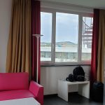 Unsere Überlegung im hoteleigenem Restaurant zu essen verwarfen wir schnell anhand der Tatsache, dass dort kein einziger anderer Gast saß und die Preise stark überhöht waren. Aber es gab ein McDonalds, an dem wir schon kurz auf der Hinfahrt anhielten, nur wenige hundert Meter vom Hotel entfernt. Also gingen wir zu Fuß zu diesem und aßen dort. Danach ging es auch schon wieder zurück ins Hotel. Ein kurzer Rundgang und wir fanden auf dem Flachdach die Räumlichkeiten fürs Wellness, die wir aber weder betraten noch nutzten. Wir gingen also auf unser Zimmer. Hier haben wir es uns gemütlich gemacht und natürlich auch die Zimmereigene Badewanne genutzt. Danach im Bett mit ein wenig TV, bevor wir dann erschöpft einschliefen. Zu erwähnen ist noch, dass wir aus dem Hotelzimmer eine schöne und direkte Aussicht zum Museum und vor allem der Concorde sowie der Tupolew hatten. Des weiteren hatte man ebenfalls eine Aussicht auf das nebenan stehende SAP-Stadion, waas Tani natürlich sehr erfreute. Am nächstem Morgen machten wir uns fertig und trockneten mit dem Hotelfön meine nassen Schuhe. Dann gigen wir zum Frühstücksufett nach unten. Das Frühstück war reichhaltig und gut. Wir aßen und satt, tranken unseren Kaffee und räumten unser Zeug danach ins Auto. Dann checkten wir noch an der Rezeption aus und fuhren los richtung Speyer.