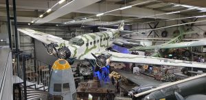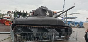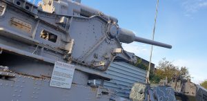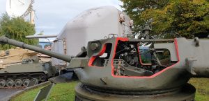 Weiter ging es in einer vom Außenbereich angeschlossene Halle, in der es um den zweiten Weltkrieg ging. Hier standen Fahrzeuge und Flugzeuge aus dem Krieg. Ebenfalls hing eine Junkers „Tante Ju“ an der Decke, die noch original mit den zeitgemäßen Symboliken versehen war. Neben dieser gab es noch diverse weitere Flugzeuge und Helikopter, die an der Decke gehangen wurden. Ebenfalls zu sehen war ein im Krieg zerstörter Panzer, von dem man die Teile so hingelegt bzw. gehangen hat, wie die im original unbeschädigtem Panzer waren. Dieser war rot beleuchtet und durch Knöpfe ein wenig interaggierbar. Ebenfalls war auf der zweiten Ebene, auf der man um die Halle im zweitem Stock rum gehen kann eine in Glaskästen gestellte Ausstellung von Modellen zu Kriegsfahrzeugen, vor allem Panzer oder mobile Kanonen. Eine weitere Runde durch den Außenbereich, in dem wir noch eine große Antenne in Form eines Parabolspiegels sahen, sowie einen Panzerturm, der seitlich zum hineinschauen aufgeschnitten war. Ebenfalls in dieser Halle ausgestellt waren Uniformen verschiedenster Epochen unterschiedlicher Dienststellen und Ränge. Diese waren in Glaskästen an Plastikfiguren. Zu diesen natürlich eine riesige Menge Zubehör sowie Abzechen und Co. Auch Diesel Stromaggregatoren aus dem Krieg waren in dieser Halle zu finden.