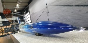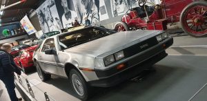 Weiter ging es in einer Halle, in der „The Blue Flame“ stand. Dies war ein Hochgeschwindigkeitsfahrzeug, was einen Weltrekord erzielte und durch einen Bremsschirm gebremst wurde. Das Fahrzeug stand direkt am Zugang zu einem Restaurant, in dem wir uns rein saßen und gegessen hatten. Ich habe dort Schnitzel mit Pommes gegessen, Tani ein Hauseigenes Museumsbier von der wir die Flasche immer noch haben. Wärend des Restaurantbesuches entschieden wir uns, auch in Speyer am nächstem Tag nach dem Museumsbesuch noch eine Nacht verbringen zu wollen. Ich rief in Speyer im Museumshotel an und nach einigen Versuchen buchte ich uns dort ein Zimmer (dies geschah doch erst in Speyer selbst). Nach dem Essen ging es natürlich weiter durchs Museum. In der Halle, in der auch die Blue Flame stand, gab es auch eine Ausstellung von Sportwagen (meines wissens nach eines der größten Ferrari-Sammlungen) und Oldtimer. Ebenfalls ausgestellt war hier ein DMC DeLorean.