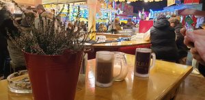 Am 12.11.2024 waren wir dann abends nach der Arbeit abermals auf der Kirmes, denn an diesem Dienstag war um 21 Uhr dort das Feuerwerk. Wir parkten in Dinslaken auf dem Parkplatz an der Neutorgallerie vor der Volksbank, da dort ab 18 Uhr gebührenfrei geparkt werden kann. Dort holte ich etwas Bargeld ab und dann gings zu Fuß zur Kirmes. Der Weg war von der Entfernung in Ordnung. Wir gingen dort eine Runde über die Kirmes, wobei wir am selben Glühweinstand wie letztens hielten und wieder einen Sitzplatz dort bekamen. Wir bestellten hier auch das Gleiche. Philipp hat mich zwischenzeitlich mal angeschrieben, dass er auch dort ist, leider kam es schlussendlich nicht zu einem, Treffen.