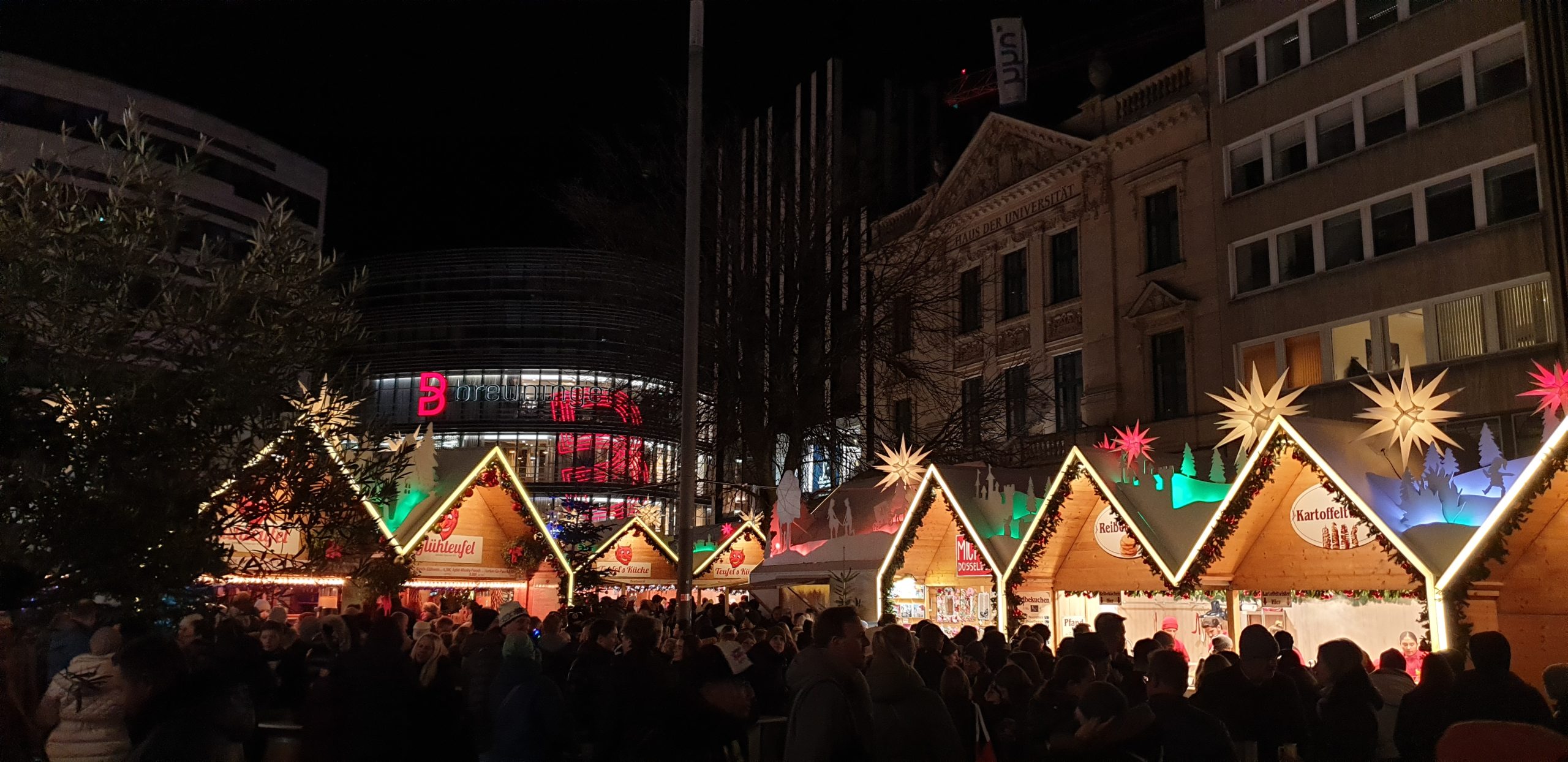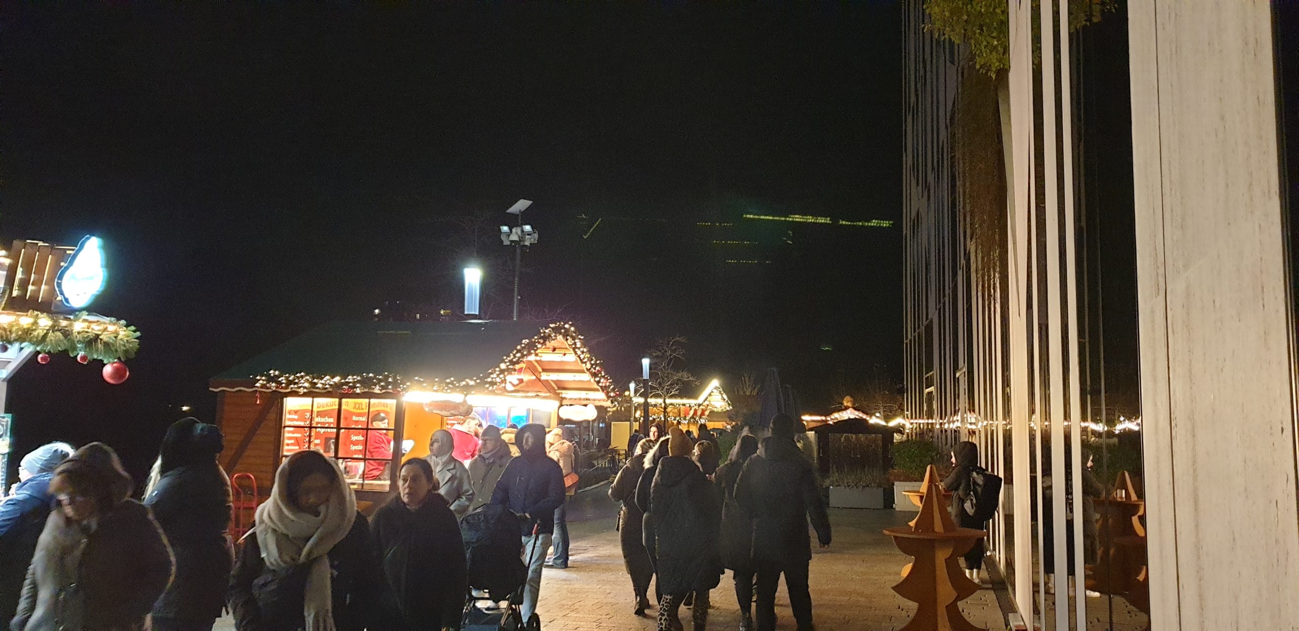 01. Dezember 2024 – und somit 1. Advent 2024: An diesem Sonntag fuhren wir nach Düsseldorf, da dort verkaufsoffener Sonntag war. Die fahrt dorthin war staufrei und auch einen Parkplatz fanden wir überraschend schnell und waren schlussendlich froh, dass wir nicht ganz am Anfang den erstbesten Platz genommen hatten. Nach dem Parken an üblicher Stelle auf dem Weg zur Kö schaute ich noch ein wenig auf die Autos, da einige einen Zettel zur Parkerlaubniss hatten, sowie einer ein Zettel, dass man da nicht stehen soll. Da ich aber nirgens etwas zum Theema Parkverbot oder Parken nur mit Genehmigung las, blieben wir dort stehen. Es gab auch keinen Ärger. Wir gingen wie immer zu Fuß über die Brücke und sahen direkt, dass am Ufer das Riesenrad wieder aufgebaut war, sowie dort der erste kleine Weihnachtsmarkt.