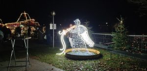 Wir gingen zu einem Stand auf eines der Schiffe, an dem Tani am Freitag (dem Tag zuvor) mit Ihren Eltern schon einen Wichtel gekauft hat. Dort kaufte Sie noch einen. An einem anderen Stand wollte Sie ein süßes Geschirrtuch mit zwei Katzen drauf kaufen, was Sie am tag zuvor mit Ihren Eltern gesehen hatte. Kaufen wollte Sie dies aber mir mir zsuammen. Leider war dies schon weg und es gab keines mehr davon. Wir gingen weiter zum hinterstem Eck des Weihnachtsmarktes, wo eine leuchtende Engel-Statue stand und es ein Glühweinstand gab, an dem Tani ein Glühwein bekam. WIr setzten uns dort auf eine Parkbank ein wenig hin. Danach gingen wir allmälich zurück, zum Spanferkel-Stand, der auf die Frage, ob die heute noch was hätten leider mit „da sind wir leider fünf Minuten zu spät“ antwortete.