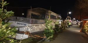 Am Samstag den 30. November 2024 waren wir auf der Mülheimer Schiffsweihnacht in Mülheim an der Ruhr. Tani kannte diese bereits, da Sie am Freitag, dem Tag zuvor, bereits mit Ihren Eltern dort war. Nachdem wir ein Bärchi bei „Schley’s Blumenparadies“ in Essen gekauft haben und am Buli die Plane wieder drauf gemacht haben (und diesen mit viel Seil umwickelt hatten) und bei meinem Eltern noch ein wenig saßen, fuhren wir zurück nach Mülheim an der Ruhr. Wir kamen um ca. 19 Uhr dort an. Als erstes lächelte uns direkt ein Spanferkel-Stand an, aber ich wollte erstmal alles gesehen haben, bevor wir da was essen… Großer Fehler, wie sich im Nachhinein rausstellte… Wir gingen also ein wenig durch den kleinen beschaulichen Markt zum Stand, an dem es heißen Met gab, von dem wir uns einen gönnten.