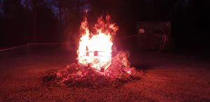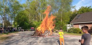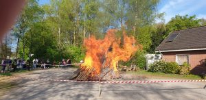 Am 19. April 2025 war das diesjährige Osterfeuer am Bürger – Schützen – Verein Hiesfeld am Rotbach. Wie die letzten zwei Jahre auch, trafen wir uns dort wieder mich Michael, der diesmal seine Frau mitbrachte. Wir fuhren, nachdem wir selbstgemachte Frikadellen gegessen hatten mit ein paar Klopfer in der Tasche los nach Dinslaken. Parken taten wir wie jedes Jahr am Straßenrand an der ehemaligen (?) Tierarztpraxis am Spielplatz, von wo aus man in ein paar Gehminuten am Schützenverein ist. Diesmal war das Feuer sehr groß und strahlte ordentlich Wärme ab. Wir gingen erstmal kurz zum Feuer um festzustellen, dass es wirklich sehr warm da wird. Michael haben wir zimlich schnell gesehen, wo? Natürlich am Bierstand. Er stand da mit ein paar anderen leuten am sprechen.