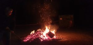 Auch die Feuerwehr schaute sich ads Spiel an und machte Fotos. Obwohl das Feuer weit weg war hat die Hitze hier scheinbar für greicht. Man nahm es aber mit Humor. Meine Idee wäre ja, dass im Sommer als „Sonnenschaden“ der Versicherung zu melden, wer sollte da dann was anderes beweisen, selbst wenn der Gutachter rätseln wird, weil es natürlich nicht durch die Sonne sein kann. Dass war aber dann doch nur ein Spassvorschlag. Diesmal wurde das Feuer dann irgendwann mit Wasser gelöscht. Scheinbar war die Frau vom stellvertretendem Schützenvereinsleiter nicht da und somit ginge wir diesmal nicht rien an die Bar. Tani und die Frau von ichael haben sich wohl ganz gut verstanden, was auch Michael anmerkte, die er nicht erwartet hat, dass Sie bis zum Schluss dabei bleiben würde. Mit einer ordentlich angeheiterten Tani und ich glaube fünf bunten Eiern ging es dann torkelnd richtung Heimfahrt.