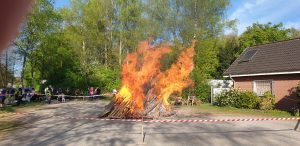 Am 19. April 2025 war das diesjährige Osterfeuer am Bürger – Schützen – Verein Hiesfeld am Rotbach. Wie die letzten zwei Jahre auch, trafen wir uns dort wieder mich Michael, der diesmal seine Frau mitbrachte. Wir fuhren, nachdem wir selbstgemachte Frikadellen gegessen hatten mit ein paar Klopfer in der Tasche los nach Dinslaken. Parken taten wir wie jedes Jahr am Straßenrand an der ehemaligen (?) Tierarztpraxis am Spielplatz, von wo aus man in ein paar Gehminuten am Schützenverein ist. Diesmal war das Feuer sehr groß und strahlte ordentlich Wärme ab. Wir gingen erstmal kurz zum Feuer um festzustellen, dass es wirklich sehr warm da wird. Michael haben wir zimlich schnell gesehen, wo? Natürlich am Bierstand. Er stand da mit ein paar anderen leuten am sprechen.