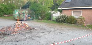 Auch die Feuerwehr schaute sich ads Spiel an und machte Fotos. Obwohl das Feuer weit weg war hat die Hitze hier scheinbar für greicht. Man nahm es aber mit Humor. Meine Idee wäre ja, dass im Sommer als „Sonnenschaden“ der Versicherung zu melden, wer sollte da dann was anderes beweisen, selbst wenn der Gutachter rätseln wird, weil es natürlich nicht durch die Sonne sein kann. Dass war aber dann doch nur ein Spassvorschlag. Diesmal wurde das Feuer dann irgendwann mit Wasser gelöscht. Scheinbar war die Frau vom stellvertretendem Schützenvereinsleiter nicht da und somit ginge wir diesmal nicht rien an die Bar. Tani und die Frau von ichael haben sich wohl ganz gut verstanden, was auch Michael anmerkte, die er nicht erwartet hat, dass Sie bis zum Schluss dabei bleiben würde. Mit einer ordentlich angeheiterten Tani und ich glaube fünf bunten Eiern ging es dann torkelnd richtung Heimfahrt.