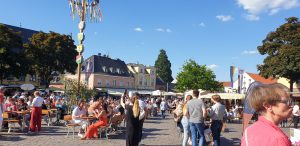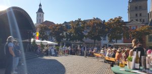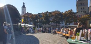 Tani holte sich zwischenduch noch an einem anderem Weinstand ein 0,2er Wein und später holte ich Ihr noch ein 0,2er von dem berreits bekanntem rose lieblichen. Tani wollte an einem Weinstand dann eine Flasche holen, da die aber nur noch eine hatten und diese nicht so rausgaben, brachte Tani nur ein weiteres 0,2er Glas. Nach all dem gingen wir noch zu dem Stand, an dem Tani zuletzt was geholt hatte, nachdem Tani auf der dort nebenstehenden Toilette war, holte sich Tani an dem Stand noch einen Wein, diesmal einen anderen, vom Winzer empfohlenen, von dem Sie erstmal ein Probierschluck bekam. Wärend wir da standen, begann Michael Larsen mit Schlagermusik an der Bühne.