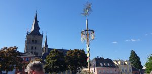 vom 09. Mai bis zum 11. Mai 2025 war in Xanten das 20. Wein- und Musikfest. Wir waren am Muttertag, Sonntag den 11. Mai dort, da es Tani am Samstag nicht so gut ging.Wir fuhren gegen Mittag dort hin und suchten erstmal einen Parkplatz. Auf den normalen Parkplätzen haben wir hinter der Volksbank nirgens was gefunden, weswegen wir die Straße weiter hoch gefahren sind, in einer Wohnsackgasse, wo wir am Sraßenrand bisher immer was fanden So auch heute gefühlt an der sleben Stelle, wie das letze Mal. Wir gingen erstmal kurz zur Volksbank, etwas Bargeld abholen, was man bei so einem Fets durchaus mal brauchen kann. Dann gingen wir erstmal zum Fest. Dies war auf dem Marktplatz mitten in Xanten. Direkt gesehen: Es war zumindest schonmal größer als vor kurzem das Hopfen und Traubenfest in Köln. Eine Bühne war auch aufgebaut.