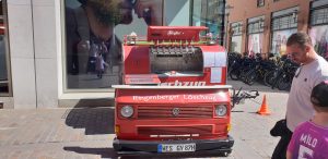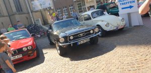 Am 27. April 2025 fuhren wir nach Bocholt, da dort das Stadtfest „Bocholt Blüht“ stattfand, mit Oldtimertreff und verkaufsoffener Sonntag. Wir fuhren richtig unser bekannten Aldi-Parkplatz in der Nähe des Bocholter Einkaufszentrum, den wir schon mal als geheimtipp zum Parken am Sonntag kennengelernt haben. Allerdings fanden wir diesmal schon kurz davor an Strassenrandparkplätze einen guten platz. Von da gingen wir dann nach Bocholt Innenstadt, was nur wenige Gehminuten weg war. Auf dem Platz des Einkaufszenters waren jede Menge alte Feuerwehrwagen ausgestellt und dort stand auch ein Leiterwagen, der ausgefahren war. Kurz danach standen auch schon die ersten Oldtimer. Gerade als wir da standen, kam unter anderem eine alte silberne Cobra an. Wir gingen weiter richtung Marktplatz, in der Stadt war verkaufsoffener Sonntag, aber nichts weiter besonderes aufgebaut. Auf dem Marktplatz am Rathaus dann, gab es eine Bühne wür die Oldtimer, die da ankamen, sowie einen Currywurst und einen Bierstand. Auf dem Platz an unserem ehemaligem lieblingskonditor an der Kirche stand auch alle svoller Oldtimer, darunter auch zwei alte Mustangs (66er und 67er Baujahr). In der Seitenstraße dann standen Oldtimer, die zum Verkauf dort standen, unter anderem zwei alte VW-Bulis. Die Hauptstraße am Konditor vorbei weiter stand ebenfalls alles voller Oldtimer und auch links rum gings weiter. Wir sahen unter anderem auch ein replika eines alten Bughattis, sowie das original etwas weiter, auf dass wir von einer Person, die uns dass gesagt hat aufgeklärt wurden. Auch ein paar Enten und eine alte Corvette war dort. Zwischendurch sahen wir zwei leute, die mit einer Drohne das ganze Spektakel filmten. Irgendwann wurde ndann klar: Es war mehr für mich ein oldtimer Treffen, als für Tani ein Stadtfest mit Bier und Wein. Irgendwann entschieden wir uns zum einzigen Stand mit was zu Essen zu gehen und uns jeweils eine Currywurst mit Pommes zu holen. Wir setzten uns an einem Tisch, leider gab es extremst viele kleine Gewitterfliegen, die uns das Essen erschwerten. Zu uns, bzw. gegenüber von uns setzte sich ein älterer Herr in Rennjacke und sprach ein wenig mit uns. Mir kam er erstmal leicht verrückt vor. Er war wohl Rennfahrer, unter anderem auch in der Formel eins und meinte, dieses Oldtimertreffen mit zu sponsoren. Auch sagte er, dass er mit einem Wagen, an der Sparkasse steht, einem Morgan. Dieses Fahrzeug sieht wie ein Oldtimer vond er Form her aus, war aber Baujahr 2024 und hatte BMW Technik drinnen, was man auch an dem Automatikschaltknüppel sah. Das Auto hatte ich tatsächlich zu beginn dort gesehen und auch die BMW Technik erkannt, was mir dann bestätigt wurde. Wir redeten ein wenig mit Ihm und gingen dann weiter. An der Sparkasse trafen wir Ihn an seinem Wagen wieder, was bewies, dass es wirklich sein er war. Er zeigte mir kurz den Motor und hatte den zuvor auch mal gestartet. Wir wechselten ein paar Worte, bevor Tani und ich dann nach Peek und Cloppenburg gingen, wo sich Tani ein Kleid aussuchte, für eine Hochzeit, auf die Sie eingeladen war. Sie fand auch ein Blaues, was Sie mitnahm. Wir gingen noch kurz nach DM, wo wir was zu trinken holten (die haben dort einen leckeren natürlichen Eistee im Tetrapack), sowie kuhtipps, die Tani brauchte. Danach gingen wir zum Auto und fuhren heimwärts. Wetter und alles war perfekt.