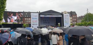 Am 24. Mai 2025 fuhren wir zum Japantag in Düsseldorf. Wir fuhren gegen frühen Nachmittag von daheim los und waren nach einer Staufreien Fahrt mit dem Navi am Ziel angekommen. Diesmal haben wir anstatt unserem üblichem Parkplatz, das Parkhaus nahe Tokio Lounge angesteuert, in deren Nähe auch ein EDEKA ist. Wir fuhren in das Parkhaus rein ein paar Etagen hoch und fanden auch direkt einen zimlich guten Parkplatz an einer Säule, bei dem auf der anderen Seite auch genug Platz zum nebenstehendem Auto war. Wärend der Fahrt gab es Regen, einige Zeit sogar etwas stärkeren. Gut angekommen nahmen wir unsere Schirme und gingen raus, richtung Königsallee, von wo aus wir richtung Japantag gingen. Im Grunde gingen wir einfach den Weg, den wir von der Königsallee normalerweise als Rückweg zum Auto nehmen, wenn wir den üblichen Parkplatz nehmen. Auf dem Platz am Rhein, wo einige Zeit mal das Vodafone-Riesenrad stand, war auch schon der Japantag.