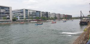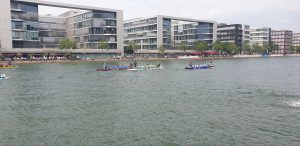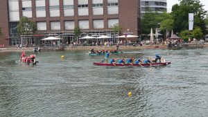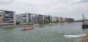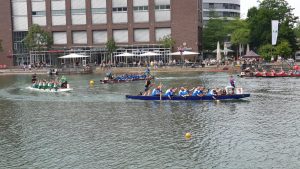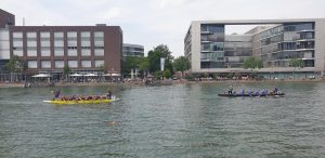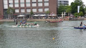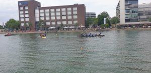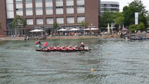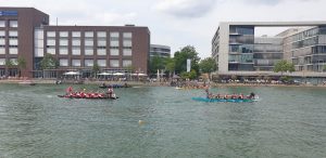 Am Sonntag, dem 15. Juni 2025 fuhren wir nach Duisburg zum Innenhafen. Dort fand eine Drachenbootregatta statt. Wir fuhren erst gegen Nachmittag los, da zuvor noch Haushaltstag war. Wir parkten am LZPD, dort gibt es, neben dem großem Streifen, auf dem man nicht parken darf (worauf wir vergangene Extraschicht noch von einem Nachtwärter hingewiesen wurden). Aber etwas dahinter gab es ein Stück, auf dem ca. fünf Autos Platz haben, wo noch zwei frei waren. Wir parkten also dort und gingen zu Fuß Richtung Innenhafen. Auf dem Weg dorthin gingen wir durch ein Veteranentreffen, was ebenfalls am Ufer dort stattfand und wo die Bundeswehr ein wenig was aufgebaut hat. Unter anderem stand dort ein großer Laster und ein mobiles Geschütz sowie ein VW-LT und einige Stände. Wir gingen durch, weiter Richtung Innenhafen. Tatsächlich fand das Fest gar nicht dort statt, wo ich dachte, wo immer das Feuerwerk zur Extraschicht abgefeuert wird, sondern direkt auf der anderen Seite der Brücke, also noch ein paar Meter dahinter, wo ich auch noch nie wirklich war. Gerade als wir ankamen, startete ein Rennen, wir haben zu der Zeit fälschlicherweise beide mitbekommen, dass es das letzte Rennen des Tages ist. Wir blieben stehen und schauten uns die zwei Runden an, die die Teams machten. Hinter uns war ein riesiges Origami-Schiff, was ein wenig verdeckt hinter Handläufen einfach herumstand. Danach gingen wir einmal bis zum Ende, zwischendurch war auf dem Wasser ein Turm von einem U-Boot, wo man scheinbar, zumindest wie es aussah, mit Tickets hereinkam. Zumindest kam da ein Pärchen mit sichtbaren Tickets in der Hand rein. Nach kurzer Recherche im Internet: Dies ist tatsächlich kein echtes U-Boot, sondern nur ein Kunstwerk namens „ICH KANN, WEIL ICH WILL, WAS ICH MUSS“, mit einer Länge von 16,6 Meter einer Breite von 7,3 Meter und der Turmhöhe von 6,3 Meter vom Künstler Andreas M. Kaufmann und den Bildwissenschaftler und Kunsthistorikers Prof. Dr. Hans Ulrich Reck. Es besteht aus 6 mm dickem Stahl und war zum ersten Mal am Kulturhauptstadtjahres RUHR.2010 erstmals im Baldeneysee zu sehen (Quelle: https://www.innenhafen-portal.de/news/kunst-u-boot-tauchte-im-duisburger-innenhafen-auf). Wir gingen weiter zum Ende des Flusses, wo unter einer Brücke die ganzen Ruderer Ihr Lager hatten zum Umziehen, etc. Ein Sinalco-Truck, der als Bühne aufgebaut war, stand mit Pokalen bereit zur Siegerehrung ebenfalls da. Wir gingen an die Läger vorbei und kamen an der anderen Seite des Flusses aus, auf der Seite wir quasi wieder zurückliefen. Vorbei an einem Bier und Currywurststand gingen wir erstmal bis zum Ende, wo das THW stand und einen Laster, dessen Ladefläche zur Seite Richtung Wasser gekippt war, stand. Ich nehme mal an, da waren zum Entenrennen die ganzen Enten drinnen. Da dort auch schon Ende war, drehten wir uns um und gingen zurück, um uns jeweils eine Currywurst mit Pommes und Mayo zu holen. Die hatten echt gute und praktische Pappschalen dort. Obwohl die Kartenzahlung annahmen (der Kassierer sprach mit einer Frau kurz darüber, dass die Kosten heutzutage kaum mehr was sind für das Anbieten von Kartenzahlung), zahlte ich bar. Die Currywurst und Pommes waren sehr gut, die Mayo, von der man sich an einem Tisch so viel nehmen konnte, wie man wollte, war ehe nur so lala. Mit dem Essen standen wir eine Zeit am Geländer und schauten uns die Paddler beim diesmal wirklich letztem Rennen an. Auf dem Weg zum Bierstand kamen wir an einem Werbestand der Stadtwerke Duisburg vorbei, die dort kleine Pappbecher mit Wasser stehen hatten, unten am Wagen beschriftet mit dem Bereich für stilles Wasser und einem Bereich für Wasser mit Kohlensäure. Ich nahm mir dankend einen Becher stilles und zum Glück kaltes Wasser. Dann bekam Tani ein Bierchen und wir saßen uns ein wenig auf eine Bierbank dort hin. Dann war es auch schon allmählich Zeit für die Heimfahrt. Wir gingen wieder am THW vorbei, wo die ganzen LKWs gerade herausfuhren und drehten und kamen am Hafen vorbei, an dem ein paar schicke Boote standen. Ein Hausboot namens „Yolo“ stand dort mit einem großem „zu Verkaufen“ Banner. Tags später habe ich dieses Boot im Internet für 449.000 € gesehen. Auf dem Boot sahen wir vergangene Extraschicht übrigens welche, die sich von da das Feuerwerk ansahen. Wir gingen wieder am Veteranentreff vorbei, wo ich an einem Unimog von Mercedes sagte, dass mir der auch Spaß machen würde und irgendwer meinte, damit kommt man auch fast überall durch. An einem Bundeswehr-LKW, der gerade einen Ladecontainer auf die Ladefläche zog, blieb ich vorstehen und sagte zur Tani, die soll bitte kurz warten, anstatt hinter dem Container, der gerade hochgezogen wird vorbeizugehen, falls der mal abrutscht bzw. eben die Verankerung bricht oder vielleicht der Wagen mal einen Satz nach hinten macht. Darauf entgegnete einer in Uniform, dass der nicht abrutschen wird, da die Bundeswehr dann noch ein ganz anderes Problem als uns dort geplättet hätte. Einen Kommentar habe ich mir dann aber mal verkniffen, man kann ja einfach mal „Bundeswehr marode“ ergoogeln, da gibt es zahlreiche Informationen über die veraltete oft kaputtgehende Ausrüstung, schief schießende Gewehre oder gar auseinander fliegende Kampfhelikopter sowie nagelneue und trotzdem kaputte Panzer, über die sich sogar die Ukraine beschwert ebenso wie zahlreicher eben ähnlicher Unfallberichte. Als weiteres habe ich mit den SM17-Masten wohl auch genug Erfahrung gemacht, reißenden Stahlseilen, die eig. dazu gemacht sind, dies eben genau nicht zu tun (weshalb keine normalen Tauseile zum Einsatz kamen) und diese kamen noch aus einer qualitativ besseren Zeit der Bundeswehr. Wir gingen somit zum Auto und von da fuhren wir dann auch schon heimwärts auf einen gemütlichen Restsonntag.