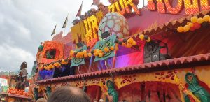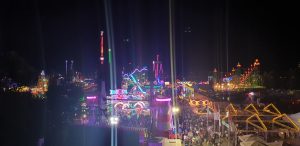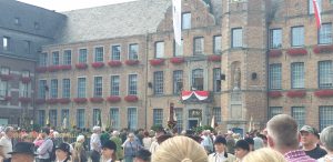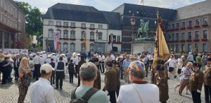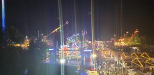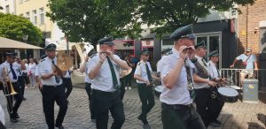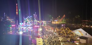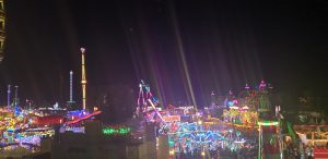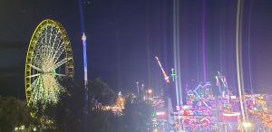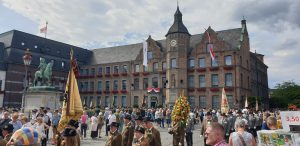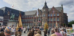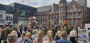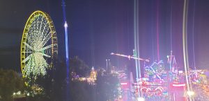 Am Samstag, dem 12. Juli 2025 fuhren wir nach Düsseldorf zur Rheinkirmes. Wir fuhren später als geplant los, kamen aber gut durch. Die Parkplatzsituation war wie erwartet schwer und somit entschlossen wir uns, an unserem Stammplatz erstmal ganz am Ende zu schauen und erwischten tatsächlich auch quasi den letzten Parkplatz überhaupt. Vom Parkplatzglück beflügelt gingen wir erstmal den etwas weiteren Weg als sonst bis zur Brücke und von da aus dann erstmal Richtung Königsallee. Da es noch relativ früh für die Kirmes war, entschieden wir uns, erstmal dort hinzugehen und sowieso kurz im Einkaufszentrum da am Volksbankautomaten Geld abzuholen. Die Straßen auf der Brücke waren wegen der Kirmes teil gesperrt. Auf dem Platz am Rhein, wo das Schiffsfahrtmuseum steht, gab es ein kleiner Trödelmarkt. Eigentlich für uns gänzlich uninteressant, aber am Anfang stehend und gut sichtbar direkt: ein Winzer mit einem Weinstand. Natürlich gingen wir dann da hin und Tani bekam erstmal einen süßen Wein. Den Winzer hatten wir bisher noch an keinem Weinfest bewusst gesehen. Wir bekamen auch gut einen Sitzplatz auf einer Bierbank und saßen da erstmal ein wenig und redeten beim Wein. Gegenüber von uns ein kleiner Stand, der selbstgemachte Füller oder sowas verkauft und der einen süßen Hund hat, der ab und an mal vom Verkaufstresen aus herausschaute. Nach dem ersten Wein, wie solls sonst sein, bekam Tani auch noch einen zweiten, denselben nochmals. Danach gings aber weiter. Wir gingen gerade mal ein kleines Stück, bis zum Rathaus, wo auch schon die nächste ungeplante Überraschung wartete: Eine Marschkapelle von uniformierten Leuten, scheinbar einen Schützenverein oder ähnliches ging die Straße runter zum Rathaus. Tatsächlich merkten wir schnell, es war nicht nur eine Gruppe, sehr viele Gruppen in unterschiedlichen Uniformen und Musiken kamen nacheinander zum Rathaus. Oben am Rathaus stand auf dem Balkon auch jemand, der im Anschluss eine Rede hielt. Bei einer Recherche im Nachhinein stellte sich rau, wir sahen den Höhepunkt des Schützen- und Heimatfest 2025 vom St. Sebastianus Schützenverein 1316 e.V. Die Feierlichkeiten gingen wohl vom 11. bis 20. Juli 2025 und was wir mitbekamen, war die feierliche Investitur, was wohl der Höhepunkt der Feierlichkeiten war (Quellen HIER und HIER). Wir schauten uns das Spektakel einen Moment lang an und gingen dann langsam weiter Richtung Königsallee. Wir holten uns jeweils einen Kaffee bei Starbucks, die hatten eine neue Sorte mit Tiramisu. Tani nahm den Tiramisu Cream Iced Oat Shaken Espresso und ich den Tiramisu Cream Iced Latte, damit wir beide neuen Sorten mal probieren. Meiner kam relativ zeitnahe, bei Tanis haben wir einige Zeit warten müssen, bis wir festgestellt haben, dass dieser wohl nicht mehr kommen wird. Wir gaben Bescheid und bekamen dann einen Ersatz. Wahrscheinlich hat ein Kunde vor uns Tanis Kaffee genommen … Schnell merkten wir, dass Tanis Kaffee mit Hafermilch und meiner mit normaler Milch war, weswegen wir tauschten, zum Wohle meines Magens. Dann gingen wir ein wenig nach Peek & Cloppenburg, wo Tani shoppen war und zwei Sachen für sich fand. Immerhin kam ich dort diesmal ohne Wartezeit gut auf Toilette. Während Tani shoppte, sah ich ein wenig aus dem Fenster, wo zwei Jungs mit Kamera und Mikrofon Passanten interviewten. Nach dem Shopping gingen wir kurz im gegenüberliegendem Elektroladen Coldblue, in dem ich nach einem Synology-NAS, sowie mal nach einem Samsung Galaxy A55 Handy geschaut habe. Wir waren nur kurz drinnen (wurden aber direkt von einem Serviceberater gefragt, ob er helfen könne) und gingen dann weiter, nun auf in Richtung Geldautomaten im Kaufhaus um die Ecke auf der Königsallee. Dort angekommen sahen wir dann, dass der ursprüngliche Volksbank-Geldautomaten gegen einen internationalen ausgetauscht wurde. Also gingen wir bis zum Ende der Königsallee zur großen Volksbankfiliale, wo ich endlich Geld abheben konnte. Von da aus gingen wir dann zur Kirmes. Die Kirmes war sehr voll und vor allem groß. Es gab die üblichen und ein paar unbekanntere Fahrgeschäfte. Unter anderem gab es eine Kopie von dem Fahrgeschäft mit dem drehenden Teller „liquid Speed“, der so wissenschaftlich thematisiert wurde, nur als Wikingerversion. Es gab eine Vielzahl von Festzelten und eine Menge Partys. Wir gingen unser Ründchen um die Kirmes, bis es allmählich dunkler wurde. Zwischendurch schaute ich mal aufs Handy, wann überhaupt Feuerwerk usw. ist und sah zufällig, dass genau heute was Neues dort ist: Eine Drohenshow. Nicht nur das, es soll sogar die größte Drohnenshow Europas sein, mit ca. 1.000 Drohnen. Etwas über eine halbe Stunde vor Showbeginn gingen wir die Treppen zu einer Straßenbrücke hoch, und fanden einen schönen Stellplatz, an dem wir warteten. Von dort aus sahen wir sogar die Drohnen, wie sie auf einer großen Fläche in Reih und Glied standen. Es wurde nach und nach voller und die Straße hinter uns wurde von der Polizei für die Zuschauer gesperrt. Wir machten uns extra ein wenig breiter, um ein wenig Platz zu haben. Zwei Leute kamen auch und fragten, ob wir Platz machen können, was wir auch ein wenig taten, was ihm aber scheinbar nicht reichte. Stattdessen standen die dann wohl hinter uns. Der Beginn der Drohnenshow zog sich etwas, da mehrere Mitarbeiter alle Drohnen nacheinander manuell einschalten mussten. Der Witz bei der Sache war, als die Mitarbeiter weiter hinten in den Drohnenreihen ankamen, fingen immer wieder am Anfang Drohnen an zu blinken, weswegen ein Mitarbeiter zu diesen ging und die nochmals betätigte. Scheinbar klinkten die sich immer aus der Verbindung raus. Dann gings irgendwann los. Die Show war schön und im Gegensatz zur Drohnenshow in Duisburg als Abschluss der Extraschicht, waren hier größere und vor allem mehrere dreidimensionale Bilder abgebildet. Nach Ende der Drohnenshow strömten die Besuchermassen dann wieder zurück zur Kirmes, weswegen die Treppe, auf der wir h