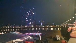 Nachtrag: Am Freitag, dem 18. Juli 2025 gab es die zweite Drohnenshow, gefolgt vom Feuerwerk in Düsseldorf. Wir waren nicht dort, lasen aber in den Nachrichten am Folgetag, dass das Feuerwerk schiefging und Raketen in die Menschenmenge flogen, genau unter der Brücke und an der Stelle, an der wir für die erste Drohnenshow standen. Dementsprechend froh waren wir, dort nicht gewesen zu sein. Mein Chef Vitaly war allerdings dort ebenso wie eine Nichte von Tani. Aber niemand war von dem Unfall direkt betroffen oder wurde verletzt.