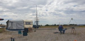 Wir bauten noch schnell das Bett auf, dann gingen Tani und ich zusammen zum OV-Zelt. Die beiden Jungs, die das erste Mal dabei sind, fuhren mit Ihrem Roller gerade weg. Hardy wollte gerade den Jürgen herunterfahren, aber Tani hat angeboten, dass wir mit Jürgen herunterfahren und dann zu Fuß hochgehen, Tani wollte nicht, dass Hardy zu viel Anstrengung hat, nach seiner OP und alles vor längerer Zeit. Somit gingen wir, nachdem wir Jürgen und die Jungs hinausließen zu Fuß hoch, im lauterem Gespräch, dass uns ja der Jäger, der wohl unterwegs sein soll hört. Während wir Contestbetrieb haben, darf er meines Wissens nach auf dem Gelände aber ehe nicht jagen. Wir holten aus dem Buli noch was Leckeres zu trinken und gingen dann ins Vorzelt zu den anderen, die noch da saßen. In erster Linie waren dies Hardy, Bernhard und Matthias. Die anderen funkten. Wir tranken ein wenig und unterhielten uns. Pytlik war auch gerade schon wieder weg, kurz bevor wir kamen. Ich bekam zu hören, dass Michael zwischendurch mal da war, leider nur genau in der Zeit, in der wir nicht dabei waren.