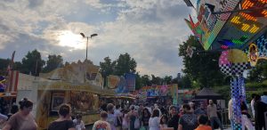 Am Sonntag, dem 13. Juli 2025 waren wir auf der Mölmsche Kirmes in Mülheim an der Ruhr. Nachdem wir am Tag zuvor in Düsseldorf auf der Rheinkirmes waren und auch eine Drohnenshow gesehen haben, war die Mölmsche Kirmes natürlich entsprechend unspektakulär. Zu essen fand man dort leider auch nichts. Anfangs standen wir an einem Bierstand „zum Ritter“, an dem Tani sich ein Bier genehmigte. Ganz am Anfang, als wir auf der Kirmes ankamen, fuhren schon einige Schaustellerfahrzeuge vom „zum Ritter“ aus der Kirmes raus, wahrscheinlich aber nur Lieferfahrzeuge. Tani trank Ihr Bier und wir hörten ein wenig die Musik, die auf der Bühne gespielt wurde zu. Es waren drei Leute, einer mit Gitarre, einer mit Keyboard und eine Sängerin. Der Musikstil war sehr gemischt, paar gute alte Sachen, unter anderem auch ABBA und rockiges und dann auch sowas wie Schlager und Helene Fischer. Ein Junge hatte ein Spielzeug, was kleine Frisbees abschießt, das kam zu uns geflogen und ich erschrak einmal richtig. Er hat sich aber entschuldigt. Die Familie des Jungen hatten einige Gläser auf dem Tisch und es sah ein wenig danach aus, als ob der Vater seinen Söhnen und Töchtern (Alter gerade mal so sechs bis acht Jahre) Bier gegeben hat. Wir gingen dann weiter um die Kirmes herum, wie geschrieben, wirklich was Interessantes sahen wir da auch nicht mehr. Zum Essen gab es nur ein „Nudel im Käseleib“-Stand, der fast interessant wäre, wenn der auch normale hätten, aber leider hatten die nur sowas, wie mit Pilzen und ähnliches. Dementsprechend aßen wir nichts auf der Kirmes. Wir gingen dann nach der Runde auch schon wieder zurück. Geparkt haben wir bei Tanis Eltern. Nach der Kirmes gingen wir auch zu denen hoch und redeten ein wenig mit denen. Tanis Vater war zurzeit gerade mit dem Hund raus. Als der Vater mit Hund dann ankam, freute der Hund sich sehr, uns zu sehen. Auch zu mir kam er voller Freude und kuschelte, wollte gestreichelt werden und leckte. Ich streichelte Sie sehr viel und Sie verlor auch eine Menge Haare auf mir. Dann nahmen wir noch die Kabeltrommel mit, die die Eltern von Tani zuletzt vom Campingplatz mitgebracht hatten und fuhren heim. Zwischendurch hielten wir noch bei McDonalds und aßen uns da was. Tanis Eltern gab uns zwei selbstgezüchtete Salatgurken mit, die sie frisch von der Pflanze vom Balkon abschnitt.