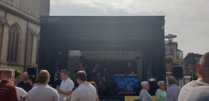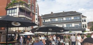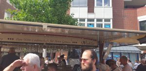 Am Samstag, dem 26. Juli 2025 waren wir wie letztes Jahr schon auf dem diesmal 29. Weinfest in Bocholt. Wir parkten wieder an der Straße bei Aldi und gingen von da zum Einkaufscenter. Diesmal gingen wir zuerst nach DM, dann kurz nach MediaMarkt (auch hier ist aus Saturn nun MediaMarkt geworden) und schließlich zum Weinfest am Rathaus und am ehemaligem Konditor Voss. Neben mehrere Weinstände war auch wieder eine Bühne aufgebaut. Tani nahm sich natürlich ein Wein und wir standen erstmal an einem Stehplatz mit Tisch. Tani nahm vom selben Stand dann erstmal noch einen Wein. Dann holte ich Tani noch an einem anderen Stand gegenüber einen Wein, an dem ich auch sah, dass die dort Weingelee als Brotaufstrich haben. Nachdem Tani Ihren Wein dort getrunken hat, und auch ein wenig Musik lief, kauften wir noch das letzte Glas Weißweingelee (da das Pfand, den wir zurückbekamen, höher als die Kosten des Gelees war, bekamen wir einfach nur weniger Pfand zurück) und gingen ein wenig herum. Auf dem Marktplatz am Rathaus haben die für die Kinder wieder diese Wasserfläche, die Wasser spritzt aufgebaut. Im Einkaufscenter gingen wir dann zwischendurch auch mal auf Toilette. Während Tani einen weiteren Wein, diesmal vom altbekanntem Weinstand aus dem letzten Jahr genehmigte, holte ich mir eine Currywurst mit Pommes an einem von zwei Essständen. Der Verkäufer gab uns zwei Holzpicker. Wir setzten uns in Strandstühle an der Wasserspielfläche und Tani pickte auch ein paar Pommes und Würstchen von mir mit. Das Wetter hat mitgespielt. Gegen Nachmittag wurde das Weinfest, wie letztes Jahr schon bemerkt, wieder sehr voll. Wir fuhren nicht allzu spät los nach Hause, um noch Zeit zum Einkaufen bei EDEKA zu haben, was wir dementsprechend auch taten. Zu erwähnen ist übrigens, dass wir diesmal tatsächlich NICHT bei Peek und Cloppenburg waren.