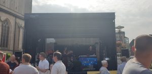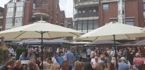 Am Samstag, dem 26. Juli 2025 waren wir wie letztes Jahr schon auf dem diesmal 29. Weinfest in Bocholt. Wir parkten wieder an der Straße bei Aldi und gingen von da zum Einkaufscenter. Diesmal gingen wir zuerst nach DM, dann kurz nach MediaMarkt (auch hier ist aus Saturn nun MediaMarkt geworden) und schließlich zum Weinfest am Rathaus und am ehemaligem Konditor Voss. Neben mehrere Weinstände war auch wieder eine Bühne aufgebaut. Tani nahm sich natürlich ein Wein und wir standen erstmal an einem Stehplatz mit Tisch. Tani nahm vom selben Stand dann erstmal noch einen Wein. Dann holte ich Tani noch an einem anderen Stand gegenüber einen Wein, an dem ich auch sah, dass die dort Weingelee als Brotaufstrich haben. Nachdem Tani Ihren Wein dort getrunken hat, und auch ein wenig Musik lief, kauften wir noch das letzte Glas Weißweingelee (da das Pfand, den wir zurückbekamen, höher als die Kosten des Gelees war, bekamen wir einfach nur weniger Pfand zurück) und gingen ein wenig herum. Auf dem Marktplatz am Rathaus haben die für die Kinder wieder diese Wasserfläche, die Wasser spritzt aufgebaut. Im Einkaufscenter gingen wir dann zwischendurch auch mal auf Toilette. Während Tani einen weiteren Wein, diesmal vom altbekanntem Weinstand aus dem letzten Jahr genehmigte, holte ich mir eine Currywurst mit Pommes an einem von zwei Essständen. Der Verkäufer gab uns zwei Holzpicker. Wir setzten uns in Strandstühle an der Wasserspielfläche und Tani pickte auch ein paar Pommes und Würstchen von mir mit. Das Wetter hat mitgespielt. Gegen Nachmittag wurde das Weinfest, wie letztes Jahr schon bemerkt, wieder sehr voll. Wir fuhren nicht allzu spät los nach Hause, um noch Zeit zum Einkaufen bei EDEKA zu haben, was wir dementsprechend auch taten. Zu erwähnen ist übrigens, dass wir diesmal tatsächlich NICHT bei Peek und Cloppenburg waren.