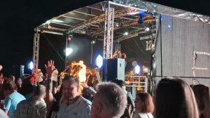 Er hat auch so ein charakteristisches Lachen, was ein wenig an einen Bösewicht aus einem Superheldenfilm erinnert. Die Stimmung dort war gut, viele machten mit und die Musik war auch wieder gut. Ich blieb da ca. eine Stunde, da ich um ca. 22 Uhr ankam und um 23 Uhr die Musik vorbei war. Das Wetter war gut und es war Vollmond. Am Ende der Musik gab es eine kurze Prügelei zwischen zwei Zuschauer, keine Ahnung warum, die aber sofort von der Security unterbrochen wurde.