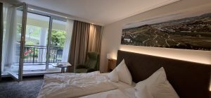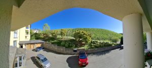 Erst ohne Koffer gingen wir uns einchecken und dann zum Hotelzimmer. Tani machte schonmal fleißig Fotos und telefonierte mit Ihrer Mutter, wärend ich ein wenig auf dem Balkon in die Weinfelder schaute und dabei Starfighter aus einer nahe gelegenen Basis hörte und schlussendlich kurz auch sah, die da Übungen flogen. Tatsächlich dass einzige mal, an dem wir die gesehen bzw. gehört haben. Dann ging ich zum Auto und holte die Koffer.