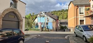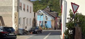 Tani sah, dass der Wein in der Minibar genau so viel kostete, wie sonst, wenn man den so kaufen würde und daher trank Sie den auch über die Tage verteilt. Eine eigene Flasche Wein brachten wir ebenfalls mit, die wir mal auf einem Weinfest gekauft haben. Nachdem wir uns ein wenig ausgeruht und quasi angekommen sind, machten wir uns auf zu einem Spaziergang durch die Ortschaft, da ich an dem Abend nicht mehr mit dem Auto weg wollte. Die Ortschaft war weniger interessant, wir sahen ein sehr seltsames Haus, was so aussah, als ob der leicht verrückte Besitzer da vieles aus Schrott selbst zusammen gebastelt hat, sowie an gefühlt jedem zweitem Haus Sperrmüll, als wäre einmal im Jahr eine Abholung. Gefühlt waren dort auch alle am renovieren und sanieren, an einem Haus standen zwei uralte Bagger, die der Besitzer wahrscheinlich billiger gekauft hat, als hätte er für die Zeit etwas gemietet.
