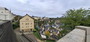 In der Luxemburger Stadt hatten wir zuerst ein Parkhaus angepeilt. in dass wir rien fuhren und was auch sehr voll war. Auf dem vorletztem Stockwerk bekamen wir aber dann einen Außenplatz. Die gegend, wo das Parkhaus stand war nicht egrade die Schönste. Wir schauten uns erstmal eine Weile um und überlegten, wo wir hin wollen. Zuerst kam der Gedanke, mitm Auto eventuell doch woanders hin zu fahren, schlussendlich bileben wir zum Glück aber da stehen. Schon nach einigen gehminuten, wurde die Gegend schöner.