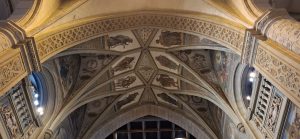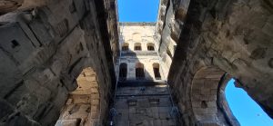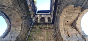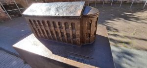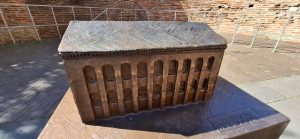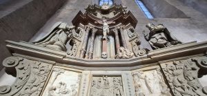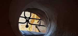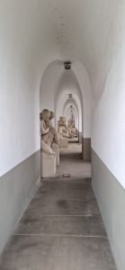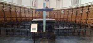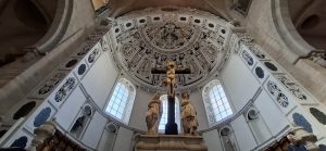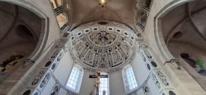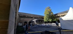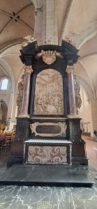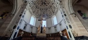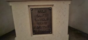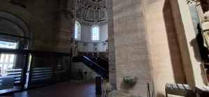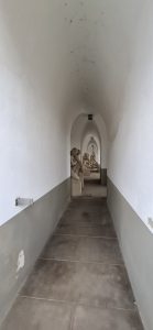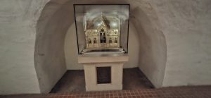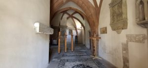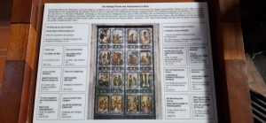 Darunter ein Grab, was ein Karitas-Logo drauf hatte. Ich schaute hier uns da in die uralten Schlüssellöcher der Türen an den Wänden, in der Hoffnung noch was historisch interessantes zu sehen, leider waren es hauptsächlich leere Räume oder Räume mit einfach Möbel drinnen. An den Wänden draußen war auch die Geschichte des Doms, vom ersten Bau, bis heute, sowie die Geschichte des Kleides Jesu, was dort war.