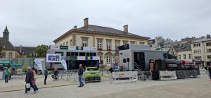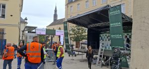 Wir gingen zischen den alten Gebäuden und Brücken und kamen irgendwann am Regierungsgebäude aus, an dem ein Soldat mit modernem Sturmgewehr quasi regungslos Wache stand, es erinnert ein wenig an die Soldaten in England am Palast. Ein paar Meter weiter war der Marktplatzd er Stadt, auf dem reges Gewusel war. Überall wurden STände und Sachen aufgebaut für das heutige Event. Eine menge Fahrzeuge und Motorräder standen als Streckenguards dort in Reih und Glied parat.