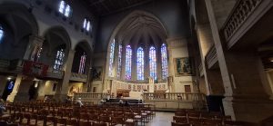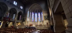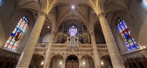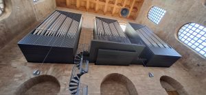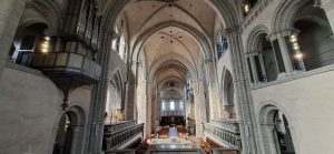 Es gab einfach kein Gold, Keine Figuren oder Statuen oder überhaupt sonst etwas. Nur vier lange und riesen hohe Wände mit einem flachem Holzdach drauf, eine Erhöhung oben, wo der Geistliche wohl spricht worüber ein einfaches Holzkreuz an Seilen von der Decke hing, sowie eine menge Lampen, die an ewig langen Kabeln von der Decke runter hingen. Dann standen da natürlich noch Sitzbänke sowie in der Ecke ebenfalls ein Suvenierstand. An der hinteren Wand war dann noch eine riesige Orgen, die scheinbar an der Wand hing, von der ich auch ohne Orgen verwundert war, dass diese bei der Dimension nicht einfach umfiel. Eine weitere kleine Orgel war dann in einer Niesche auf der anderen Seite. Die Wände waren einfach kalte rohe Wände, nicht einmal gestrichen und man sah Meißelkratzer in den Steinen. Es kamen viele Touristengruppen herein, die Führer waren auch gar nicht so leise bei den Erklärungen.