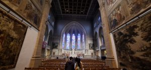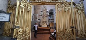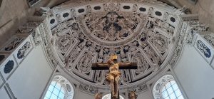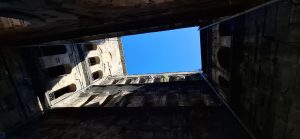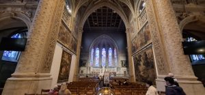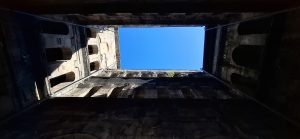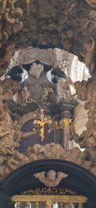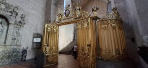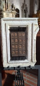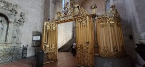 Vom Kleid selbst sah man aber kaum was, man kam auch nicht nahe ran, da der Raum zu war und man nur durch eine Scheibe sehen konnte. Dann gingen wir die Treppe noch ein Stück hoch und da konnte ich mir das Lachen spontan gar nicht verkneifen: Da war tatsächlich einfach ein Suveniershop mit einem Kassierer mitten in der Kirche oben in der zweiten Etage. Es gab ebenfalls noch ein kleines Museum, was eintritt kostete. Wir gingen wieder runter, es gab noch eine Tür raus in den Hof, wo Tani erstmal aber nicht durch wollte, da Sie dachte, dass die zu sei. Als dann doch im Nachgang einige Menschen durchgingen gingen wir auch hin