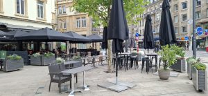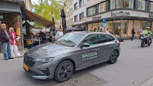 Dort gab es übrigens ein sehr teuren Audio-Laden. Lustigerweise waren Straßensperrpöller und eine Ampel quasi durch Stuhlreihen eines Außenberreichs einer Gastronomie dort. Wir schauten auf Google Maps uns fanden einen EDEKA in der Nähe unseres Hotels, an dem wir später dann halten wollten.