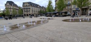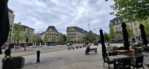 Empfohlen wurde eine Aussichtsplattform auf einem Gebäude der Stadt, die wir aber leider nicht fanden. Wir gingen scheinbar in ein falsches Einkaufszentrum, die aber interessante Spielereien da hatten. Wir gingen auch an die schicken Gebäudeanlagen der dortigen Bank entlang. In einem anderem Satdtteil dann wurde eine Straße, die wir gerade etlanggehen wollten von der Polizei komplett gesperrt, auch die dort wirklich hochmodernen und schicken Straßenbahnen konnten nicht mehr weiter fahren. Die Polizei wuselte da mit einem Spürhund rum, was genau passiert war wussten wir nicht, aber irgendwann gingen wir einfach um den Block außen rum. Von der anderen Seite versuchten wir nochmal ein Blick zu erhaschen, bevor die Poliozei die Straße dann wieder freigegeben hat. Irgendwann saßen wir dann auf einer Bank an einem Platz mit Wasserspiele im Boden und überlegten, wie wir weiter verfahren.