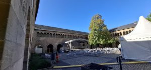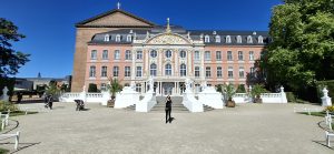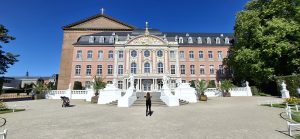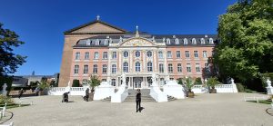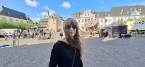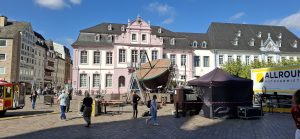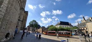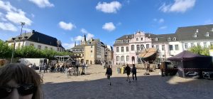 Wir hielten uns, wie bereits gesagt sehr lange in dem Trier Dom auf, gingen dann aber auch endlich mal wieder raus. Draußen war ein kleiner Platz, wo gerade auch für das Stadtfest war aufgebaut wurde, eine große Kugel und lichter, für irgendein künstlerisches Theater. Wir gingen weiter an einem Esel vorbei, wo tani von weitem schon sagte, dass ich mich drauf setzen soll, aber der Esel hatte lustigerweise ein Schild um den Hals mit der Aufschrift „Bitte nicht auf den Esel setzen“. Wir kamen von dort wieder auf dem Marktplatz in Trier aus.
