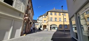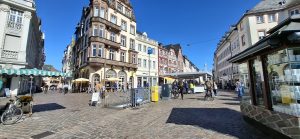 Also gingen wir noch ein wenig die Straße runter, durch den Marktplatz, auf dem ein Weinstand stand. Am Ende einer Straße kamen wir an einem Katzenkaffee vorbei, einem Kaffee, wo wirklich einfach Katzen rumlaufen, mit extra zwei Türen, damit diese nicht abhauten. An einem Musikladen, an dem ich kurz ins Schaufenster schaute, der überraschend viele Gitarren hatte, blieben wir auch kurz stehen, bevor wir dann zurück gingen. Über einen anderen Weg kamen wir an einen Straßenmusiker vorbei, der ein seltsames Instrument hatte, was ich bis dato nicht nicht so gesehen habe. Das Instrument war ein Handpan, was meine Recherchen nun gezeigt haben. Das Instrument stand übrigens auch im besagtem Musikladen im Schaufenster. Eine Frau hat dem Straßenmusiker übrigens zugehört und Fragen gestellt, woher dieses Instrument kommt usw. Wir gingen weiter an einem Brunnen vorbei wo ein Bitburger-Brauhaus war. Weiter hinten sah ich die bekannte evangelische Kirche, für die wir wegen dem Parkticket aber keine Zeit hatten. Wir gingen zurück zum Auto und suchten diesmal mit meinem Handy ein Parkhaus (Tanis Handy hat irgendwie keine Parkhäuser mehr angezeigt). Wir fanden ein gut und günstiges, was für ein Einkaufsladen bestimmt war. Wir fuhren dorthin und stellten uns auf einem gefundenen Parkplatz ab. Dann gings zu Fuß wieder zur Stadt. Anderer Weg, anderes zu sehen,