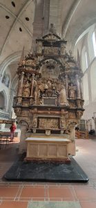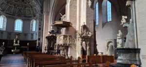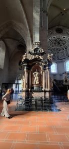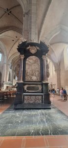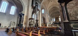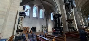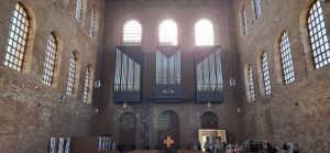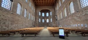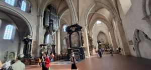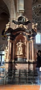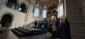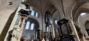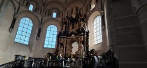 zuerst kamen wir zum Trier Dom, in den wir reingingen und auch einige Zeit verbrachten. Dieser Dom war groß und man konnte sehr viel sehen. Wir waren schon eine längere Zeit da. Neben dem Hauptsaal konnte man noch nach unten in den Keller, in dem man nebem Ritualräume noch einen Schrein aus Gold mit wohl eines der zehntausend Fingern Jesus sah. Eine Treppe hoch ging es dann erstmal über dem Ort, wo der Geistliche der Kirche redet.